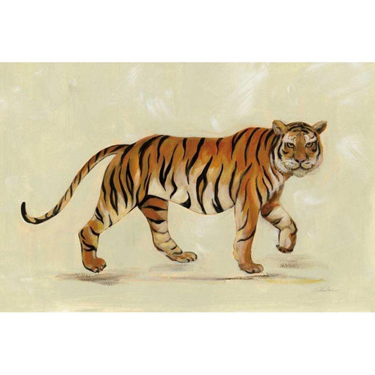 Walking Tiger Gold Ornate Wood Framed Art Print with Double Matting by Vassileva, Silvia