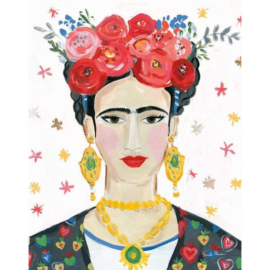 Homage to Frida Bright Gold Ornate Wood Framed Art Print with Double Matting by Zaman, Farida