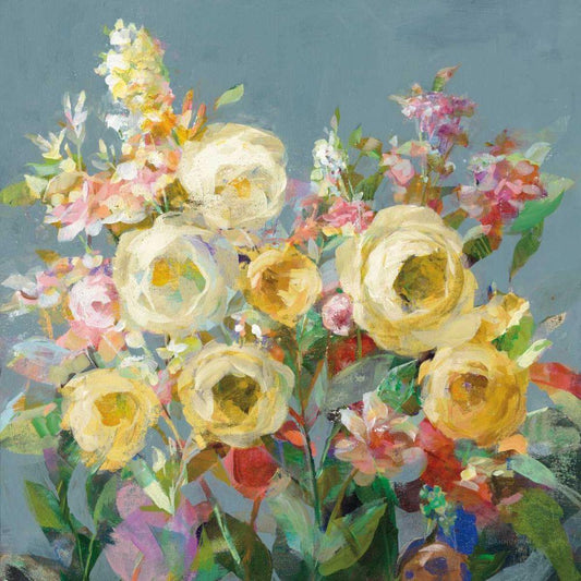 Joy of the Garden Sq II Yellow Gold Ornate Wood Framed Art Print with Double Matting by Nai, Danhui