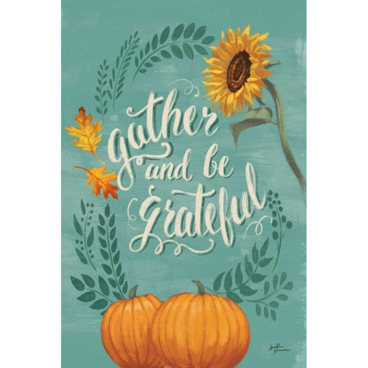 Thankful III Turquoise Leaves Gold Ornate Wood Framed Art Print with Double Matting by Penner, Janelle