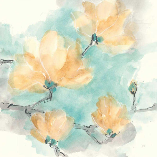 Magnolias in White I Gold Ornate Wood Framed Art Print with Double Matting by Paschke, Chris