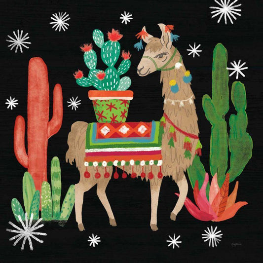 Lovely Llamas III Christmas Black Gold Ornate Wood Framed Art Print with Double Matting by Urban, Mary