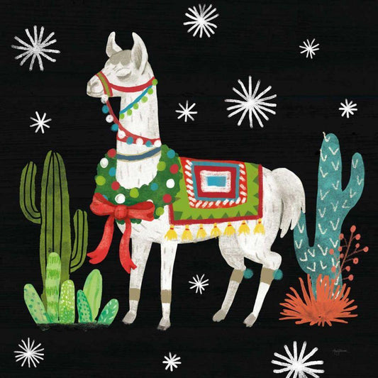 Lovely Llamas V Christmas Black Gold Ornate Wood Framed Art Print with Double Matting by Urban, Mary