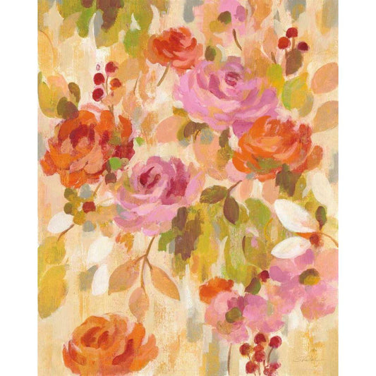 Fall Bouquet Orange Rose Gold Ornate Wood Framed Art Print with Double Matting by Nai, Danhui