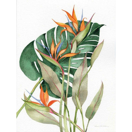 Botanical Birds of Paradise Gold Ornate Wood Framed Art Print with Double Matting by McKenna, Kathleen Parr