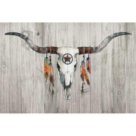 Longhorn on Wood Gold Ornate Wood Framed Art Print with Double Matting by Tillmon, Avery