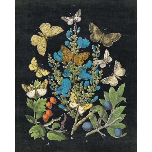 Butterfly Bouquet on Black III Gold Ornate Wood Framed Art Print with Double Matting by Wild Apple Portfolio