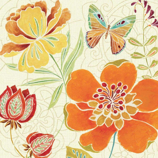 Ikat Bloom I Gold Ornate Wood Framed Art Print with Double Matting by Schlabach, Sue