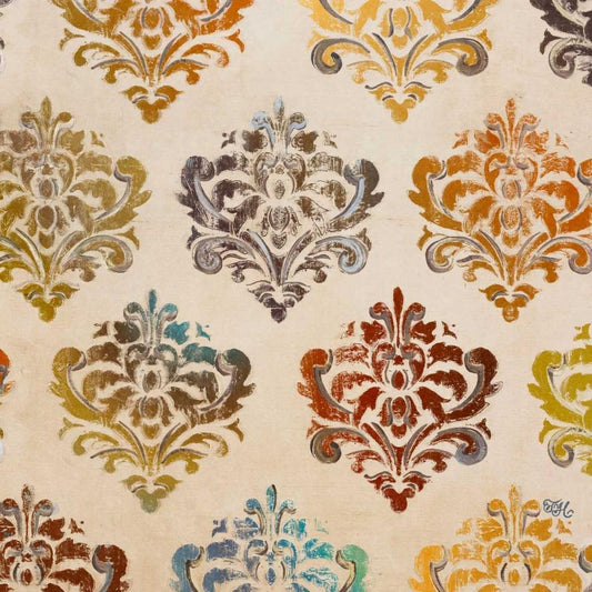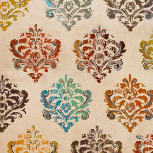 Colorful Damask Square I Gold Ornate Wood Framed Art Print with Double Matting by Hakimipour, Tiffany