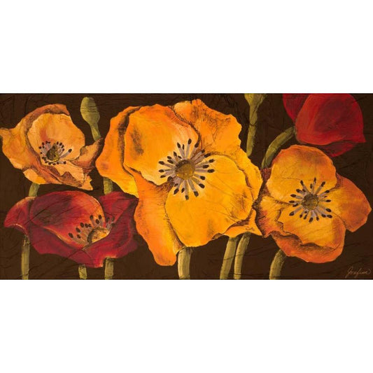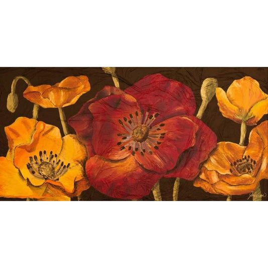 Dazzling Poppies I Gold Ornate Wood Framed Art Print with Double Matting by Josefina