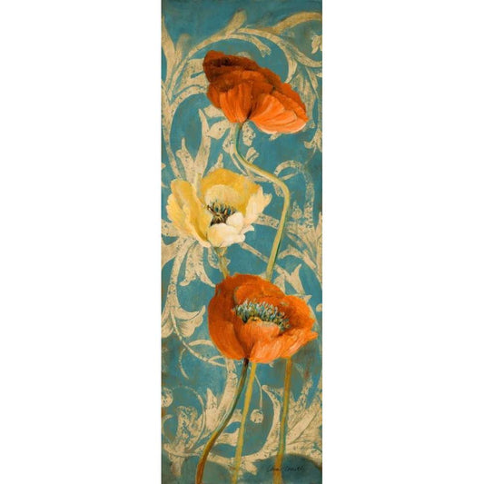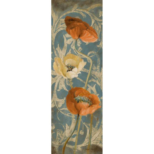 Poppies de Bleu I - enhanced Gold Ornate Wood Framed Art Print with Double Matting by Loreth, Lanie