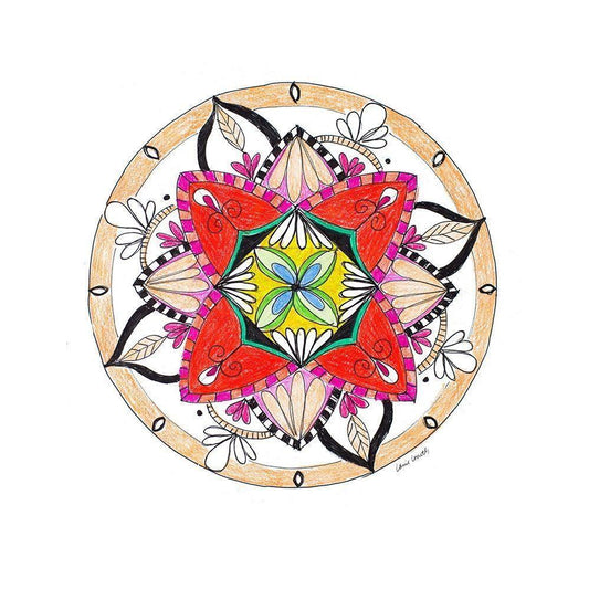 Orange Burst Mandala Gold Ornate Wood Framed Art Print with Double Matting by Loreth, Lanie