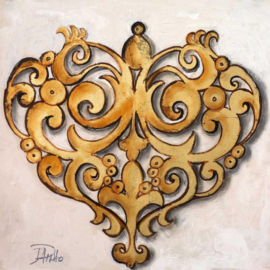 Gold Heart Gold Ornate Wood Framed Art Print with Double Matting by Pinto, Patricia