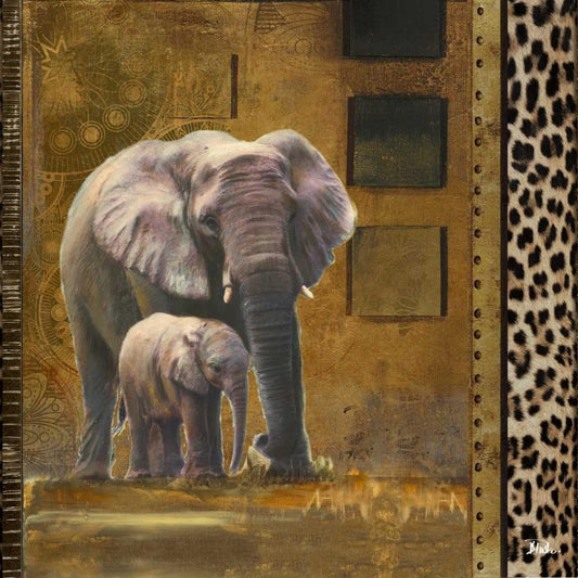Elephants and Seals Birthday I Gold Ornate Wood Framed Art Print with Double Matting by SD Graphics Studio