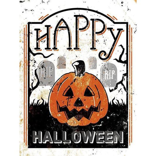 Happy Cemetery Pumpkin Gold Ornate Wood Framed Art Print with Double Matting by Villa, Milli