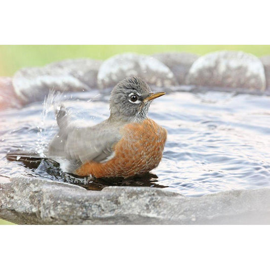Robin in Bird Bath Gold Ornate Wood Framed Art Print with Double Matting by Schell, Jennie Marie