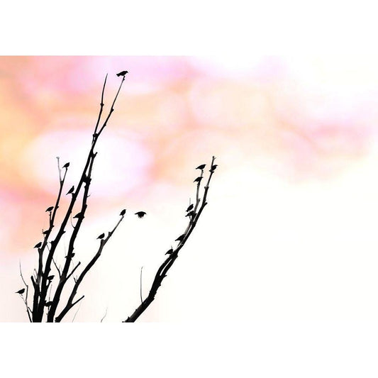 Tree Silhouette and Birds Gold Ornate Wood Framed Art Print with Double Matting by Schell, Jennie Marie