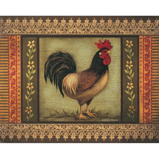 Murano Rooster I Gold Ornate Wood Framed Art Print with Double Matting by Poloson, Kimberly