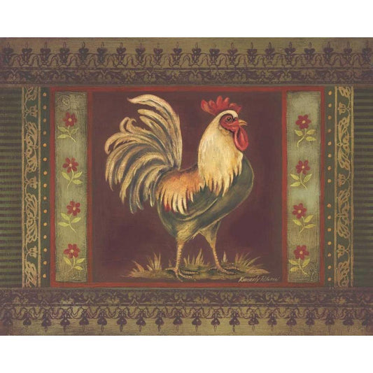 Mediterranean Rooster II Gold Ornate Wood Framed Art Print with Double Matting by Poloson, Kimberly