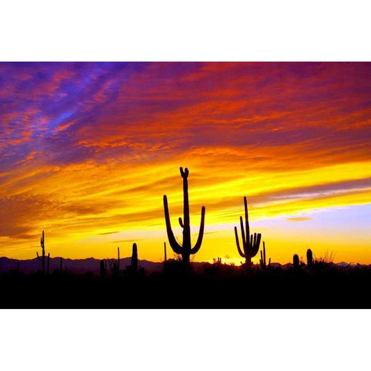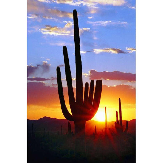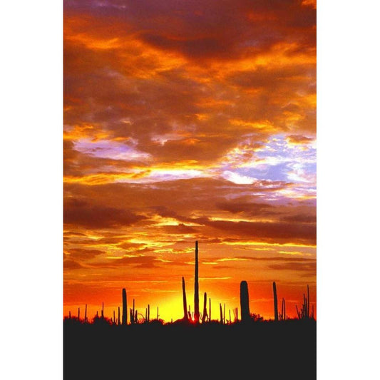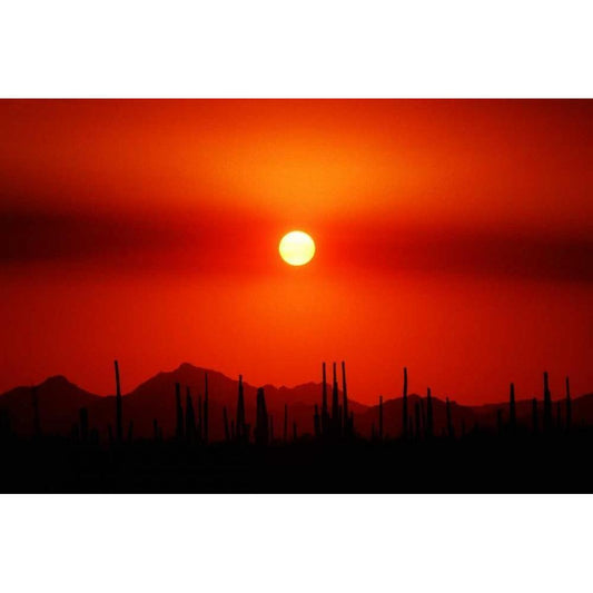 Saguaro Sunset Gold Ornate Wood Framed Art Print with Double Matting by Taylor, Douglas