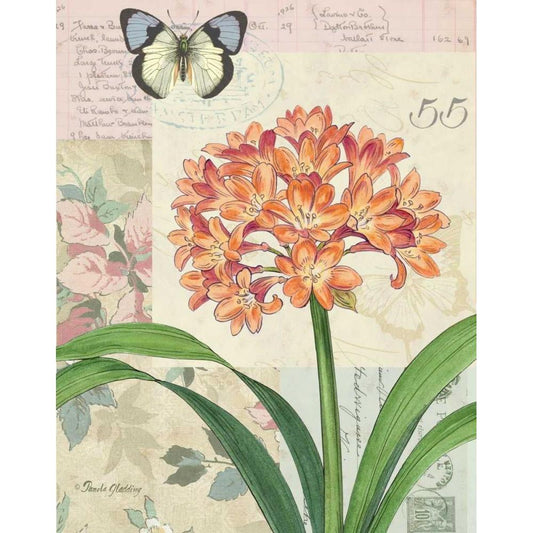 Clivia Floral Collage Gold Ornate Wood Framed Art Print with Double Matting by Gladding, Pamela