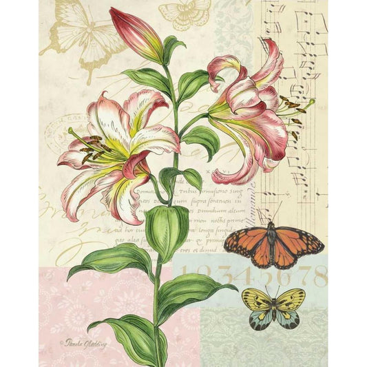 Oripet Lily Collage Gold Ornate Wood Framed Art Print with Double Matting by Gladding, Pamela