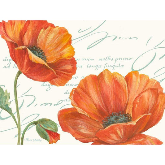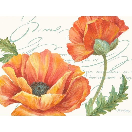 Orange Poppies I Gold Ornate Wood Framed Art Print with Double Matting by Gladding, Pamela