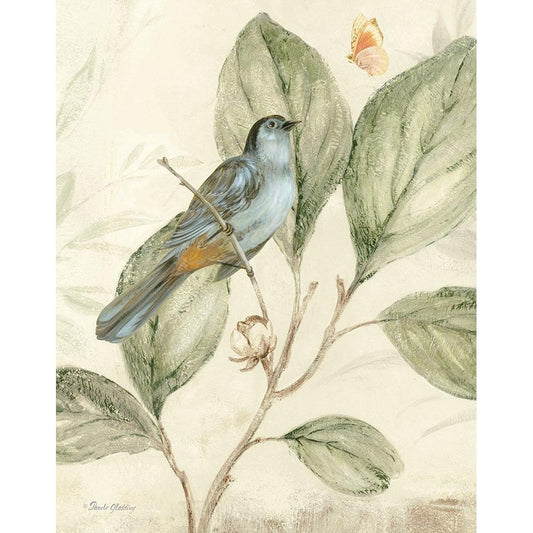 Bird And Branch II Gold Ornate Wood Framed Art Print with Double Matting by Gladding, Pamela