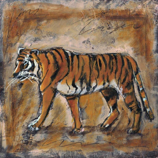 Safari Tiger Gold Ornate Wood Framed Art Print with Double Matting by Gamel, Tara