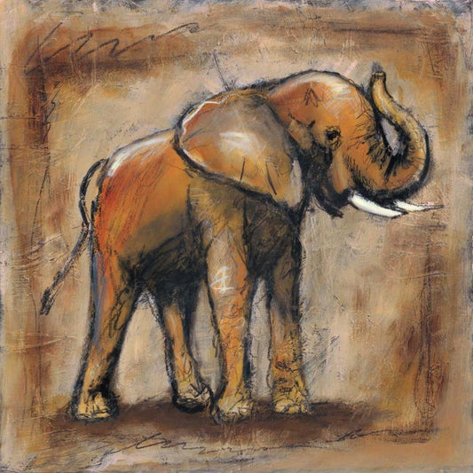 Safari Elephant Gold Ornate Wood Framed Art Print with Double Matting by Gamel, Tara