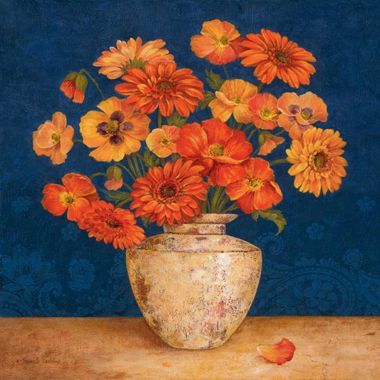 Poppies and Indigo I Gold Ornate Wood Framed Art Print with Double Matting by Gladding, Pamela