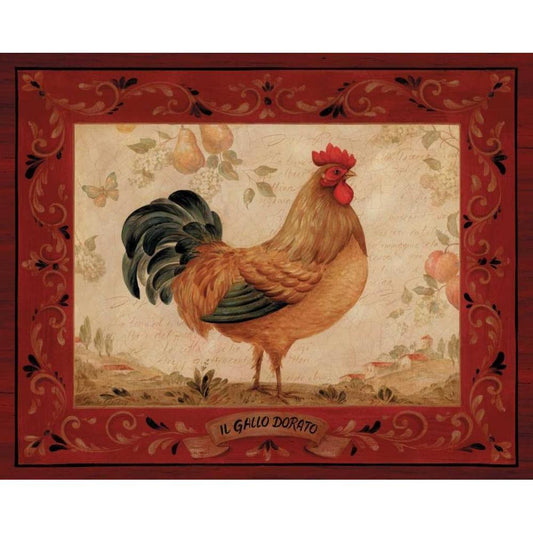 Gallo Dorato Gold Ornate Wood Framed Art Print with Double Matting by Gladding, Pamela