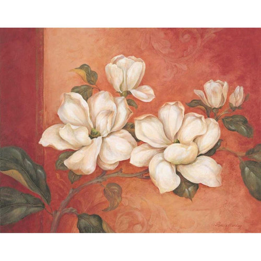 Magnolias Gold Ornate Wood Framed Art Print with Double Matting by Gladding, Pamela