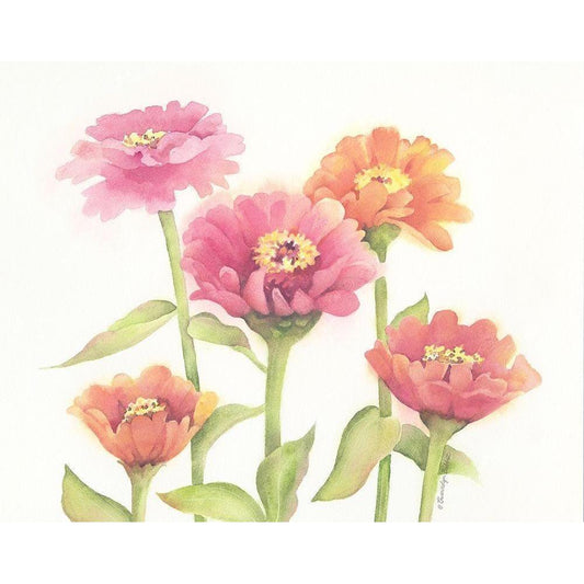 Happy Zinnias Gold Ornate Wood Framed Art Print with Double Matting by Babbitt, Gwendolyn