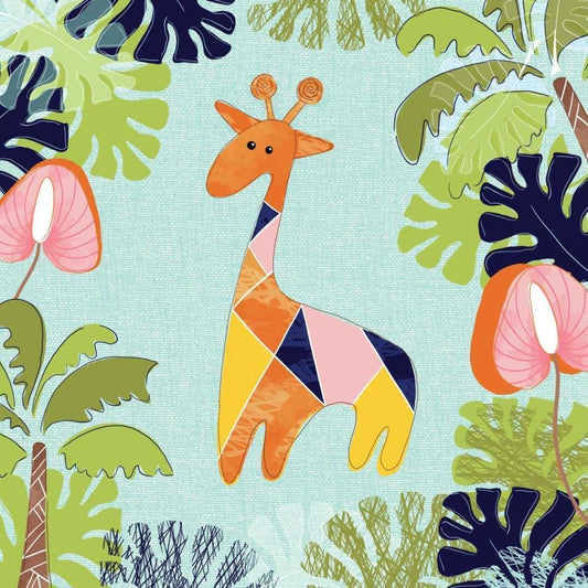 Jungle Giraffe Leaves Gold Ornate Wood Framed Art Print with Double Matting by Berrenson, Sara