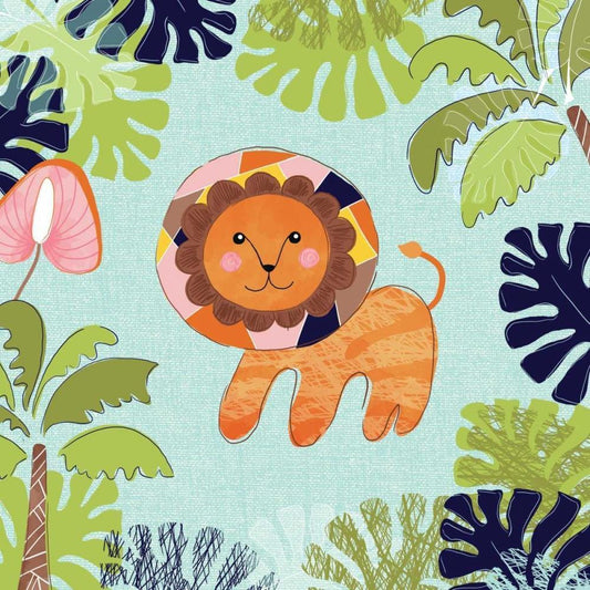 Jungle Lion Leaves Gold Ornate Wood Framed Art Print with Double Matting by Berrenson, Sara