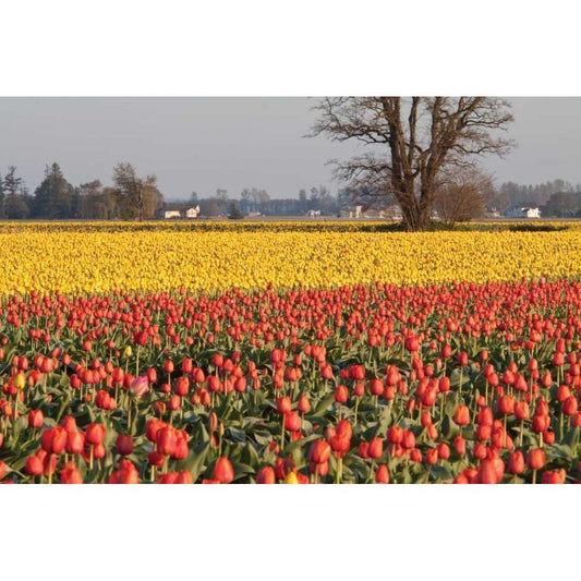Red and Orange Tulips Gold Ornate Wood Framed Art Print with Double Matting by Styber, Dana