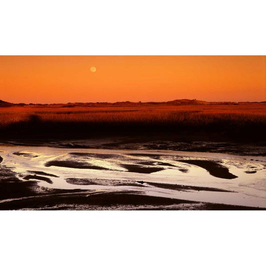 Moonrise Estuary Gold Ornate Wood Framed Art Print with Double Matting by Leahy, Ike