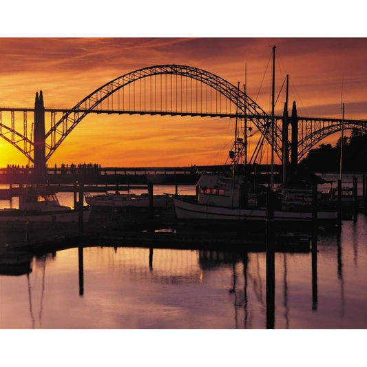 Yaquina Bay Sunset Gold Ornate Wood Framed Art Print with Double Matting by Leahy, Ike