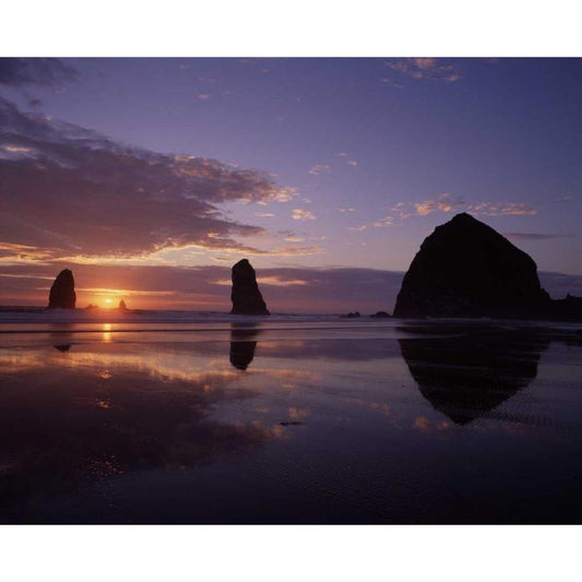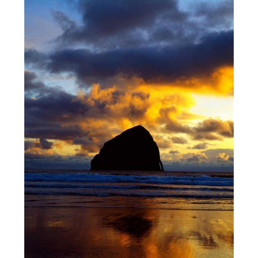 Haystack Rock II Gold Ornate Wood Framed Art Print with Double Matting by Leahy, Ike