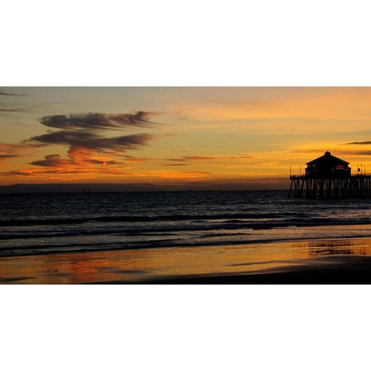 Sunset Under the Pier Gold Ornate Wood Framed Art Print with Double Matting by Johnson, George