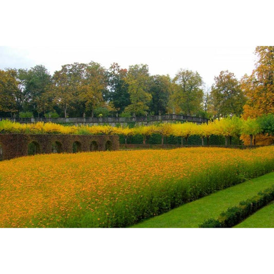 Yellow and Orange Flowers Gold Ornate Wood Framed Art Print with Double Matting by Johnson, George