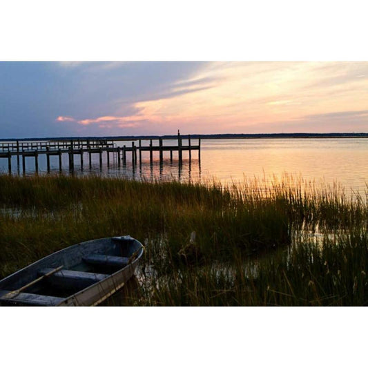 Dockside Sunset I Gold Ornate Wood Framed Art Print with Double Matting by Hausenflock, Alan