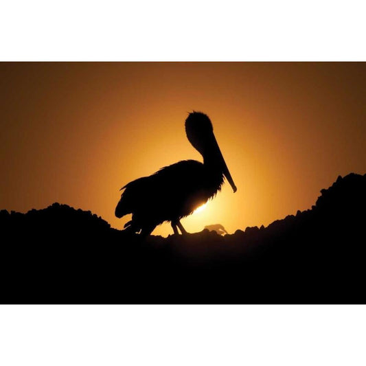 Pelican Silhouette I Gold Ornate Wood Framed Art Print with Double Matting by Berzel, Erin