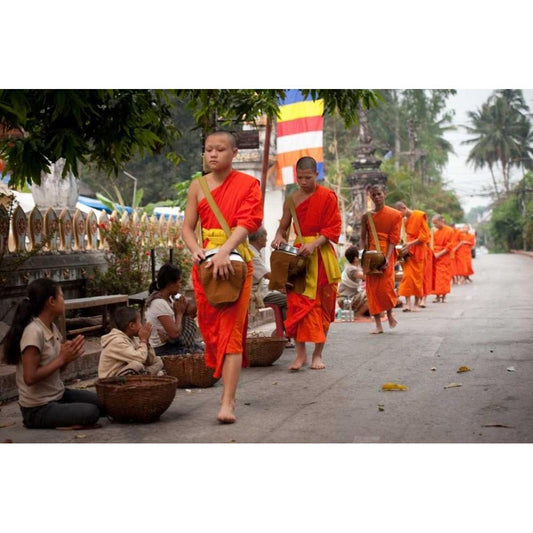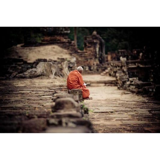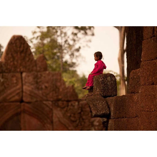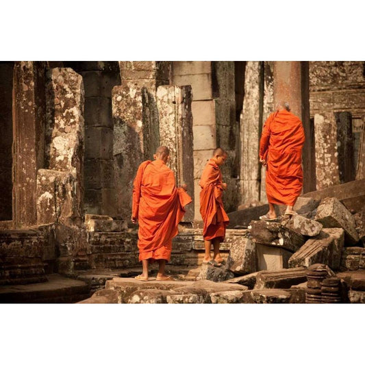 Monks at Bayon Gold Ornate Wood Framed Art Print with Double Matting by Berzel, Erin