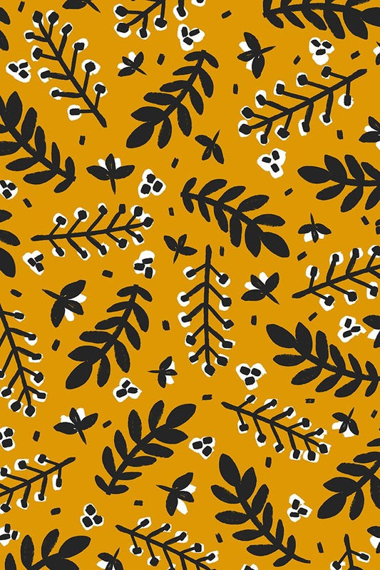 Branches And Berries (Yellow) White Modern Wood Framed Art Print with Double Matting by Treechild