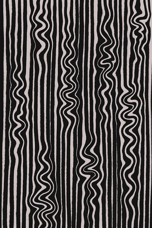 Waves in Stripes Pattern White Modern Wood Framed Art Print with Double Matting by Treechild