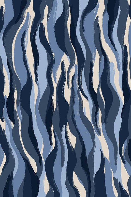 Blue Tiger Pattern White Modern Wood Framed Art Print with Double Matting by Treechild