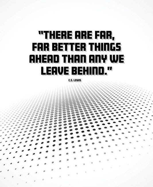 C.S. Lewis Quote: Better Things Ahead White Modern Wood Framed Art Print with Double Matting by ArtsyQuotes