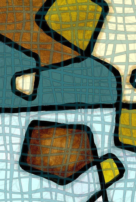Patterns Teal II White Modern Wood Framed Art Print with Double Matting by Franklin